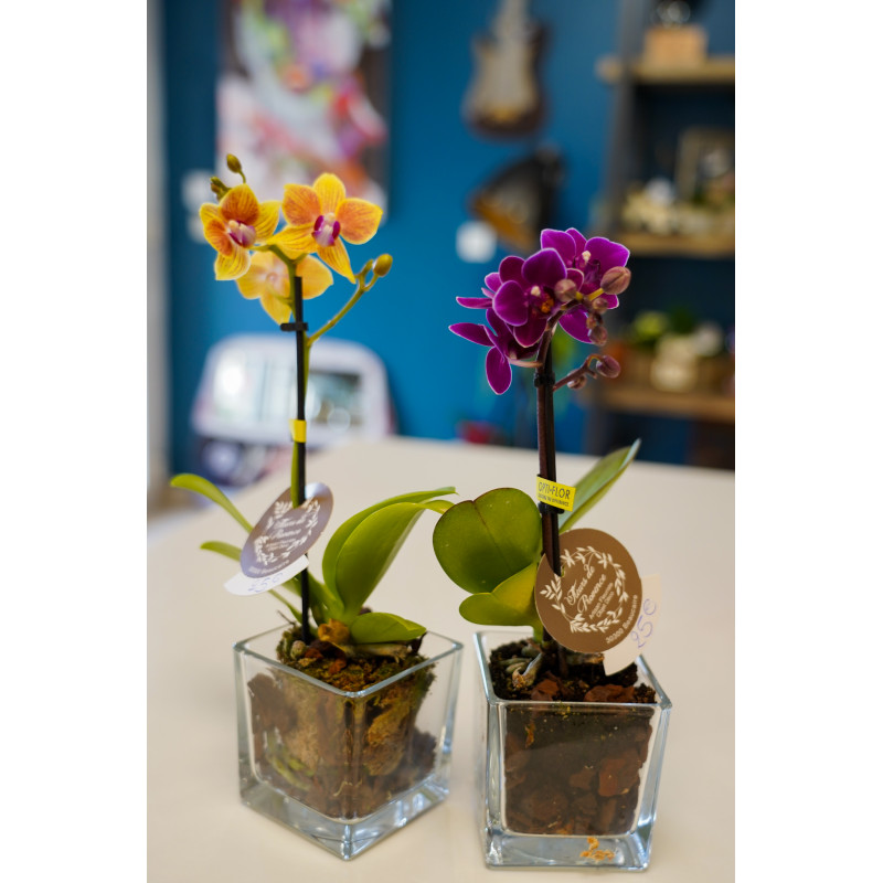 Découvrez en boutique les différentes tailles et couleurs des orchidées.