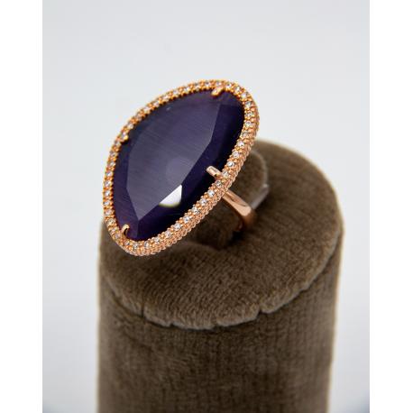 Argent 925/1000, plaqué doré - pierre violet fantaisie contour oxydes argent rose