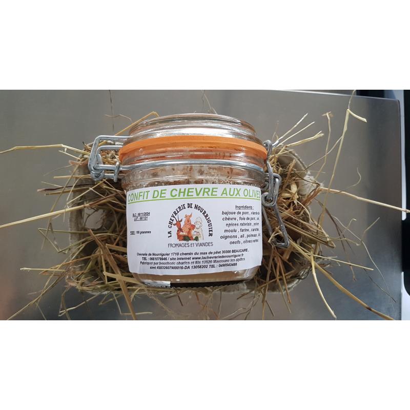 Ingrédients : bajoue de porc , viande de chèvre, foie de porc , sel , épices Rabelais, poivre moulu, farine, carottes , oignons, ail , poireaux , céleris , lait , oeufs , poivre vert