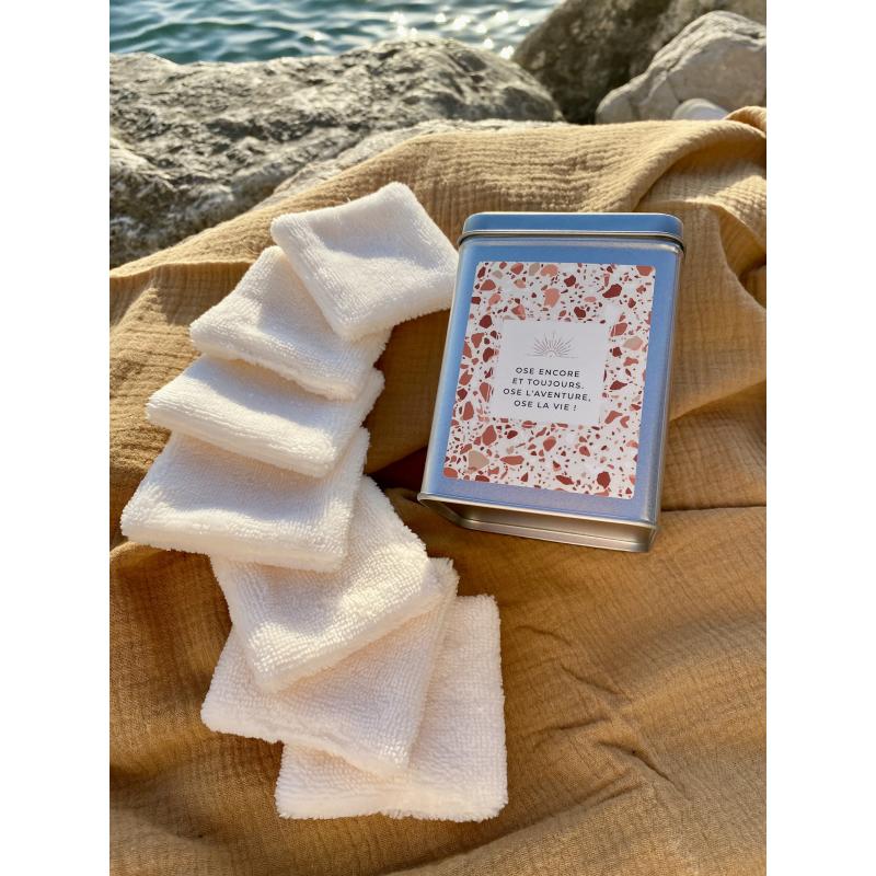 Boîte à cotons lavables et 7 cotons lavables bifaces