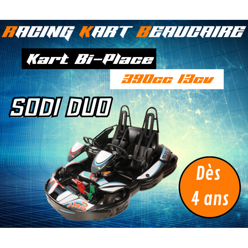 Venez profiter de notre piste de 950 m et découvrir le sport automobile sur notre kart SODI DUO de 390cc.