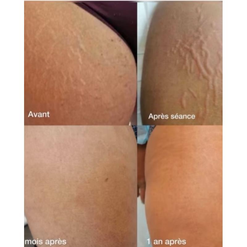 Camouflage des vergetures par dermopigmentation. 2 ou 3 séances sont nécessaires, prix des suivantes 250 €