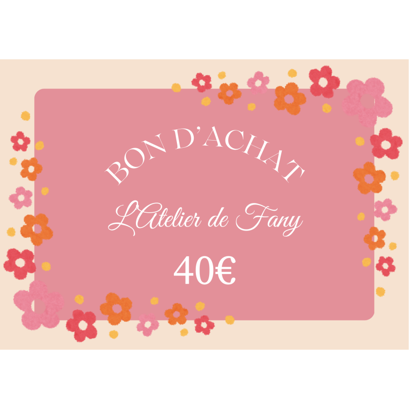 Bon d'achat de 40 euros valable sur toute la boutique.