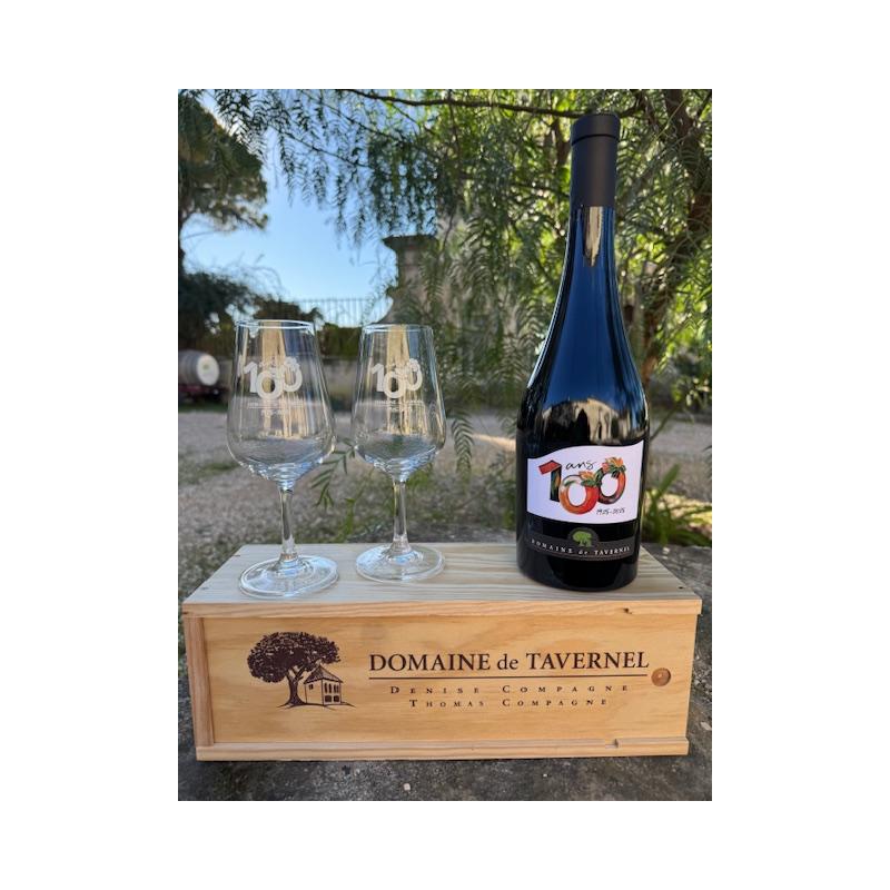 Spécial Noël - Cuvée "100 ans" 1 bouteille de 750ml avec sa caisse en bois et ses 2 verres