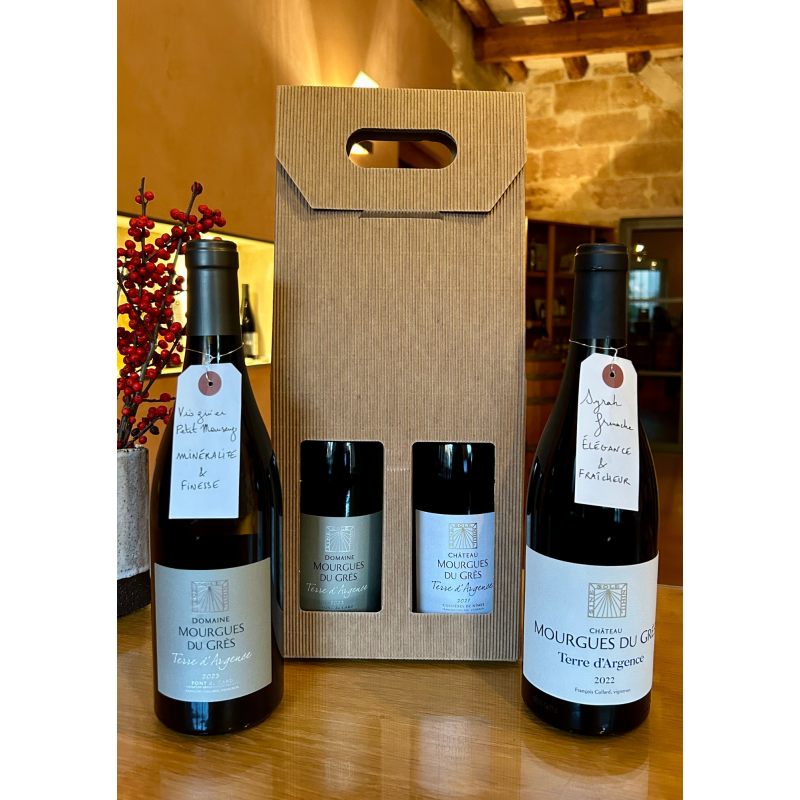 Partagez un moment d’exception avec notre coffret Terre d’Argence Rouge & Blanc. Deux cuvées élégantes et complémentaires, idéales pour accompagner un dîner romantique et célébrer l’amour autour de beaux accords.